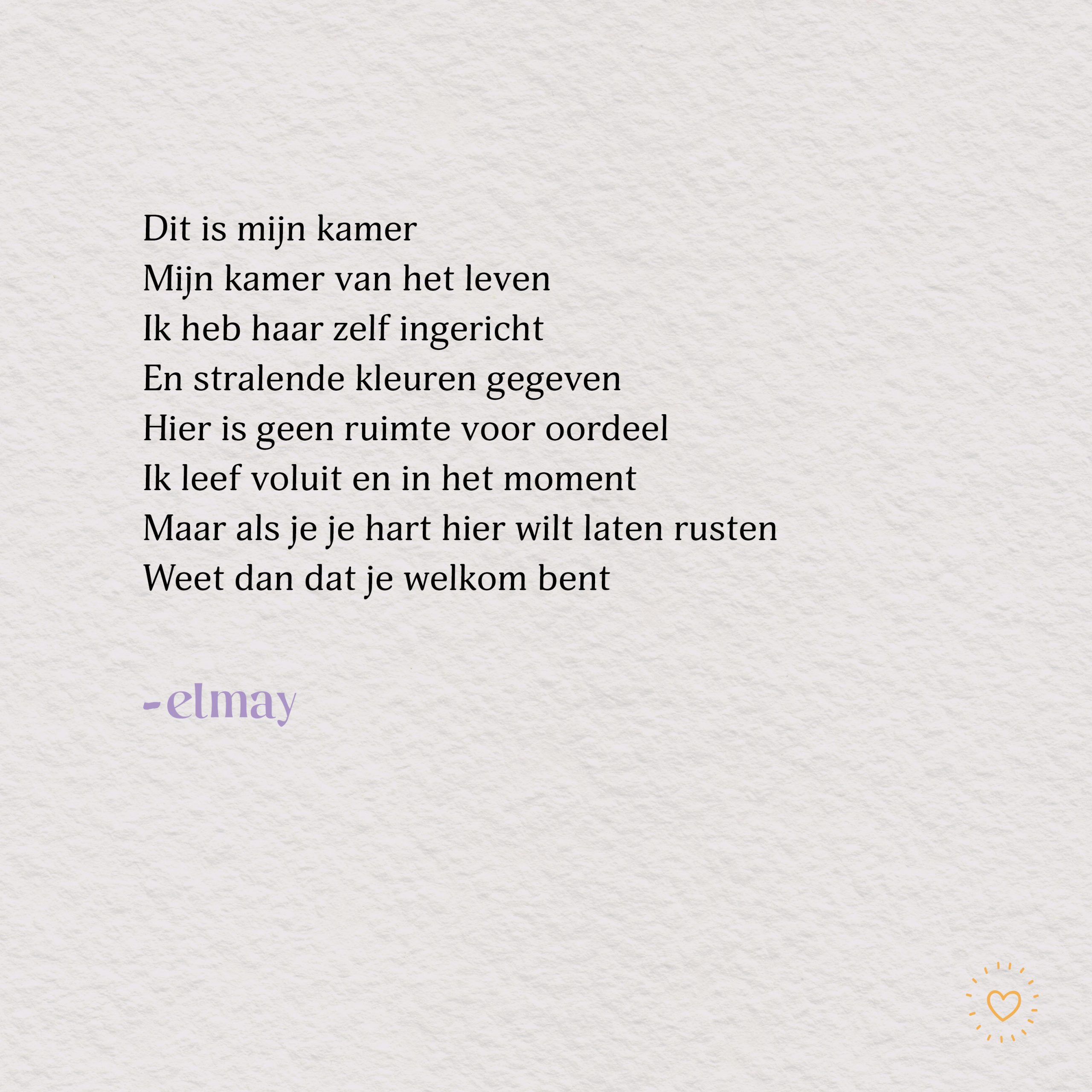 - Nieuwsgierig naar meer gedichtjes van Elmay? Neem een kijkje op haar Instagram-pagina.