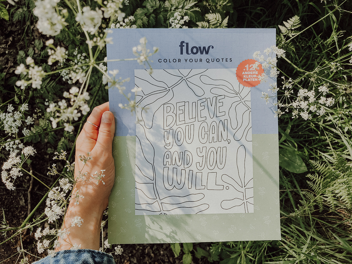 Het (poster)kleurboek dat los bij deze Flow zit, staat vol werk van Flow-illustratoren: met onder meer inspirerende quotes, bloemenpatronen en inkijkjes in keukens en kamers vol planten. Vaak zorgt kleuren voor een wat leger en kalmer hoofd.
