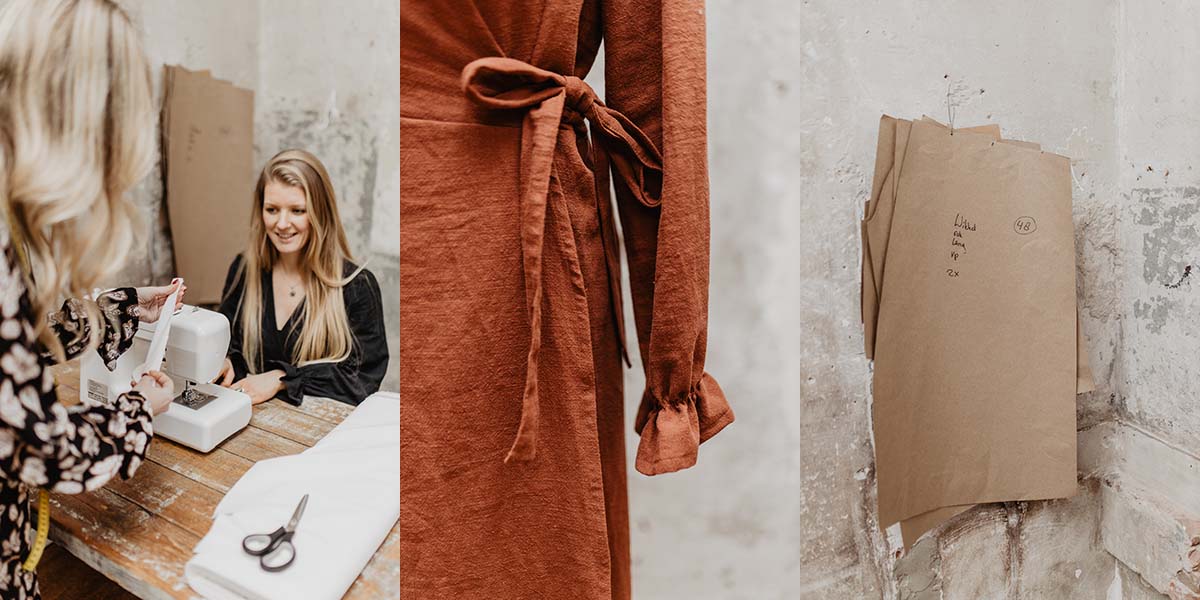 Anderhalf jaar geleden was ik aan het werk als advocaat. Ik hield van het vak, maar miste toch het creatieve in mijn leven. Daarom begon ik weer voorzichtig met het maken van jurkjes achter de naaimachine. Even later had ik zo’n tien jurkjes in mijn kast hangen en dacht ik: ik heb al eens eerder een merk opgezet, waarom deel ik het niet op Instagram? Dat ging heel goed en na een tijdje zat ik elke avond en in het weekend achter de naaimachine. Om toch nog wat vrije tijd te houden naast mijn baan als advocaat ben ik meiden om me heen gaan verzamelen die ook kleding konden maken. Nu hebben we een atelier in Amsterdam en zijn we uitgegroeid tot een groep van twaalf makers.”