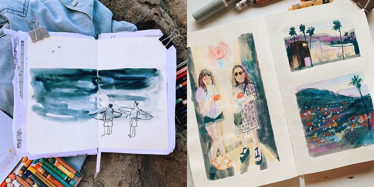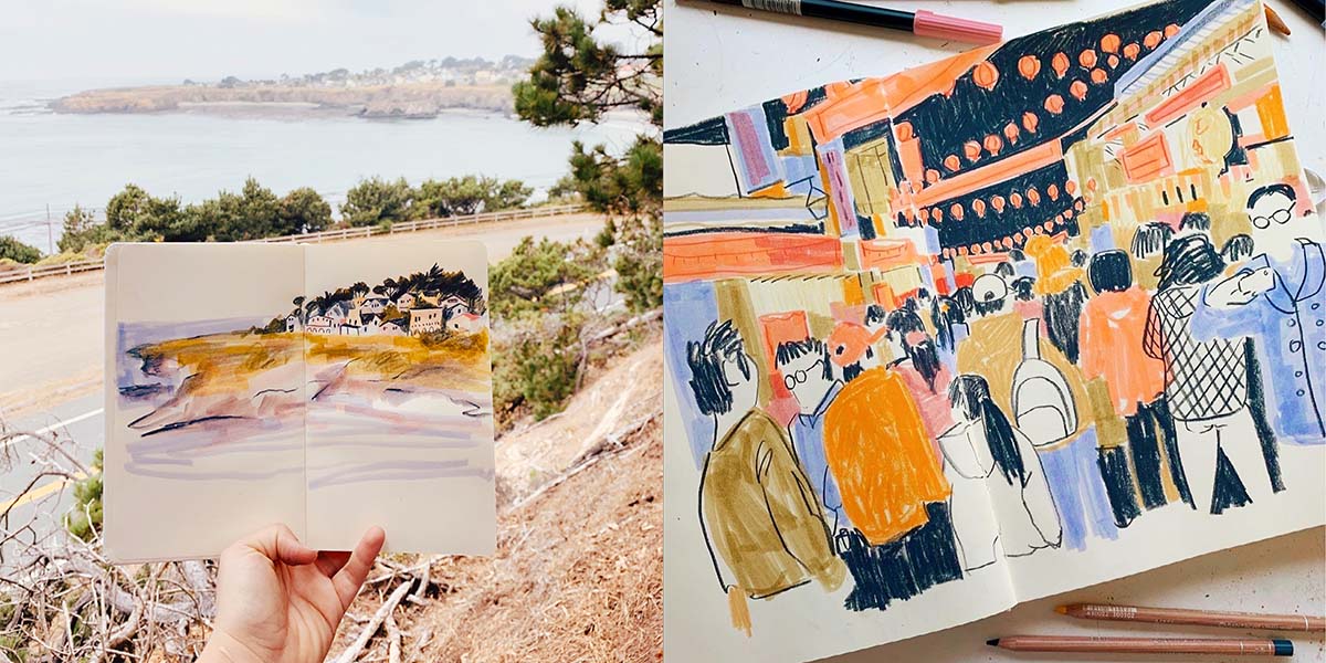 Een schetsboek bij me hebben betekent dat ik altijd iets creatiefs kan doen. Het is een leuke manier om kleine stukjes tijd gedurende de dag te vullen met creativiteit, zoals wachten op het vliegveld, zitten in een café, of tijdens een lange autorit.