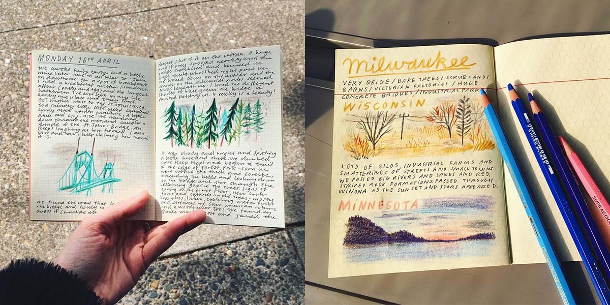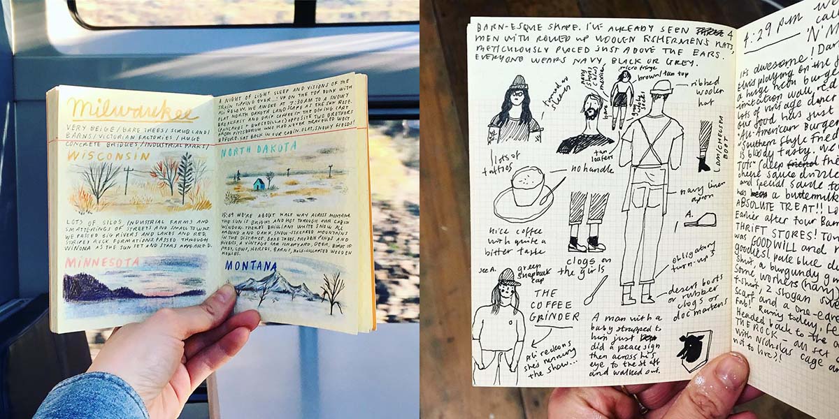 “Ik denk dat verschillende mensen een journal op verschillende manieren kunnen gebruiken. Net als een schetsboek vind ik dat iedereen er een zou moeten hebben en dat er geen regels zouden moeten zijn over hoe je het wel of niet gebruikt. Wat ik het meest waardevol vind aan een journal (en schetsboek) is dat het een soort ’tijdcapsule’ kan zijn: het documenteert een bepaalde tijd, een bepaald moment, een bepaald gevoel of een bepaald idee, dat voor altijd bewaard blijft in een boek waar je naar terug kunt gaan en het opnieuw kunt bekijken.