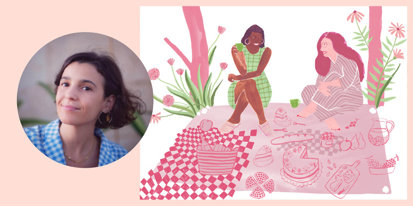 “Voor de illustraties in het boek gebruikte ik inkt en gouache, met wat digitale nabewerking. Ter inspiratie bekeek ik foto’s die ik twee jaar geleden aan het meer in Berlijn nam. Er waren veel kleine groepjes aan het picknicken en mini-feestjes aan het houden. Ik wist dat ik dit ooit wilde gebruiken in een illustratie. Ik ontwerp ook prints en patronen en werk het liefst met ecoline en gouache. Wanneer ik meer tijd heb, houd ik van borduren of probeer ik ander handwerk uit.”