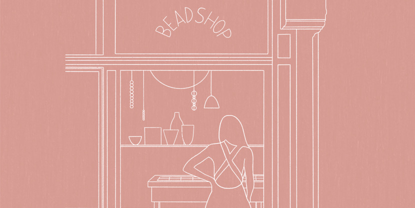 De eindeloze potjes kralen waren nu vooral intimiderend. Wilde ik kralen van keramiek? Of van natuursteen? Glas? Kunststof? En moesten het grote kralen zijn, kleine, in één kleur of juist een gevarieerd palet? En hoeveel wilde ik van elk? Wat was mijn ontwerp? Het duizelde me en hoe langer ik met het lege bakje in mijn hand rondliep, hoe verslagener ik werd.