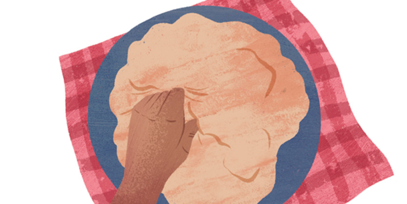 Rek wat deeg naar de zijkant vanaf de deegbal en vouw het over het midden. Draai de deegbal een kwartslag en herhaal. Ga zo verder tot je de cirkel hebt gehad. Deze ‘rek-en-vouw’-techniek versterkt het gluten en sluit lucht in zonder kneden. Dek af met een vochtige theedoek en laat een nacht bij kamertemperatuur rijzen.