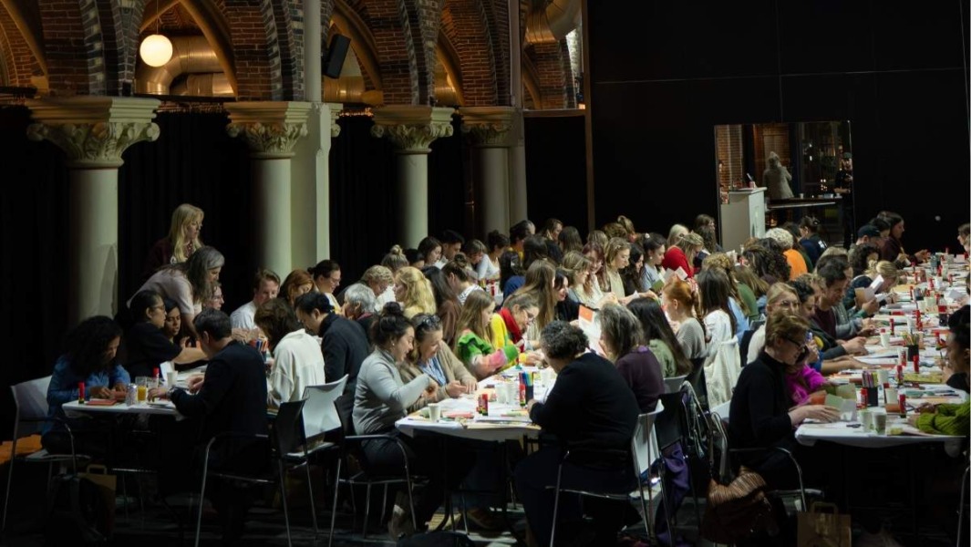 Bij binnenkomst in de Posthoornkerk in Amsterdam lever je je telefoon in (of stopt hem weg diep in je tas) en vervolgens kun je de hele avond samen met tweehonderd anderen creatief bezig zijn met papier.