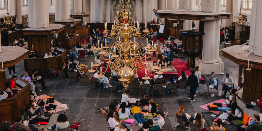 Bij binnenkomst in de Posthoornkerk in Amsterdam lever je je telefoon in (of stopt hem weg diep in je tas) en vervolgens kun je de hele avond samen met tweehonderd anderen creatief bezig zijn met papier.