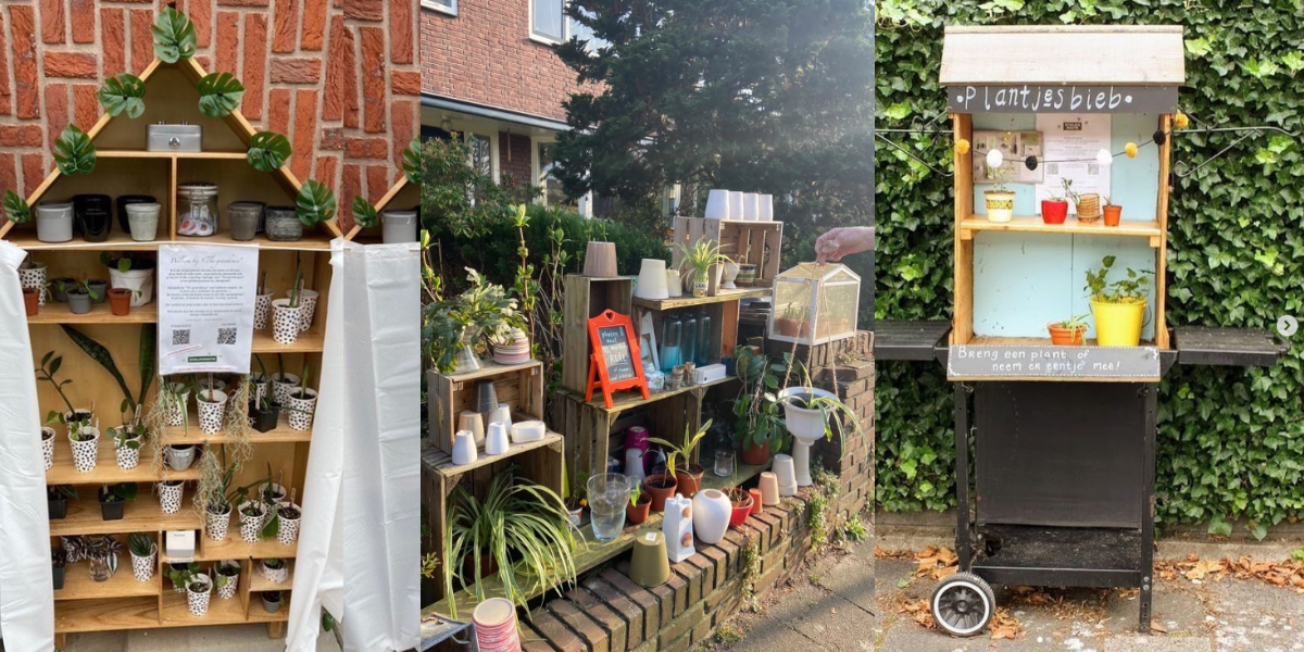 In Carnisselande (Zuid-Holland) heb je een stekplek letterlijk in de bibliotheek. Op heel veel andere plekken staan ze langs de weg of in iemands voortuin. Iedereen kan zo’n ruilkast neerzetten. Via een formulier meld je een nieuwe locatie aan, zodat die op de Stekjesroute verschijnt. En je hebt er heus geen grote kast of uitgebreide kraam voor nodig. Zo vertelt een eigenaar van de plantenbieb in Dordrecht op de Instagram-pagina van de Stekjesroute: “Afgelopen zomer zocht ik een leuke bezigheid waarin ik mijn liefde voor planten kon verwerken. Via via kwam ik op het idee om mijn eigen plantenbieb te bouwen van allerlei restmateriaal: van een houten kist die ik op straat vond tot aan het oude barbecue-onderstel van de buren. Iets minder dan een jaar verder ben ik nog steeds megablij met dit project, het levert superveel blije gezichten en gezellige gesprekken op.”
