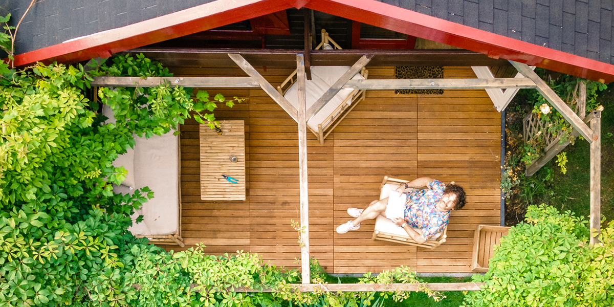 Met haar tablet op tafel, een glas water in haar hand, zat ze onder een parasol. “Koffie?” Ze liet me plaatsnemen in een van de tuinstoelen en liep haar bungalow in. Die ging schuil achter hoge bamboescheuten, fruitbomen en vogelgekwetter. Ze vertelde dat ze hier de komende maanden woonde. Ze ontving hier zelfs de patiënten van haar psychologenpraktijk. “De hele zomer is dit mijn microwereld.”