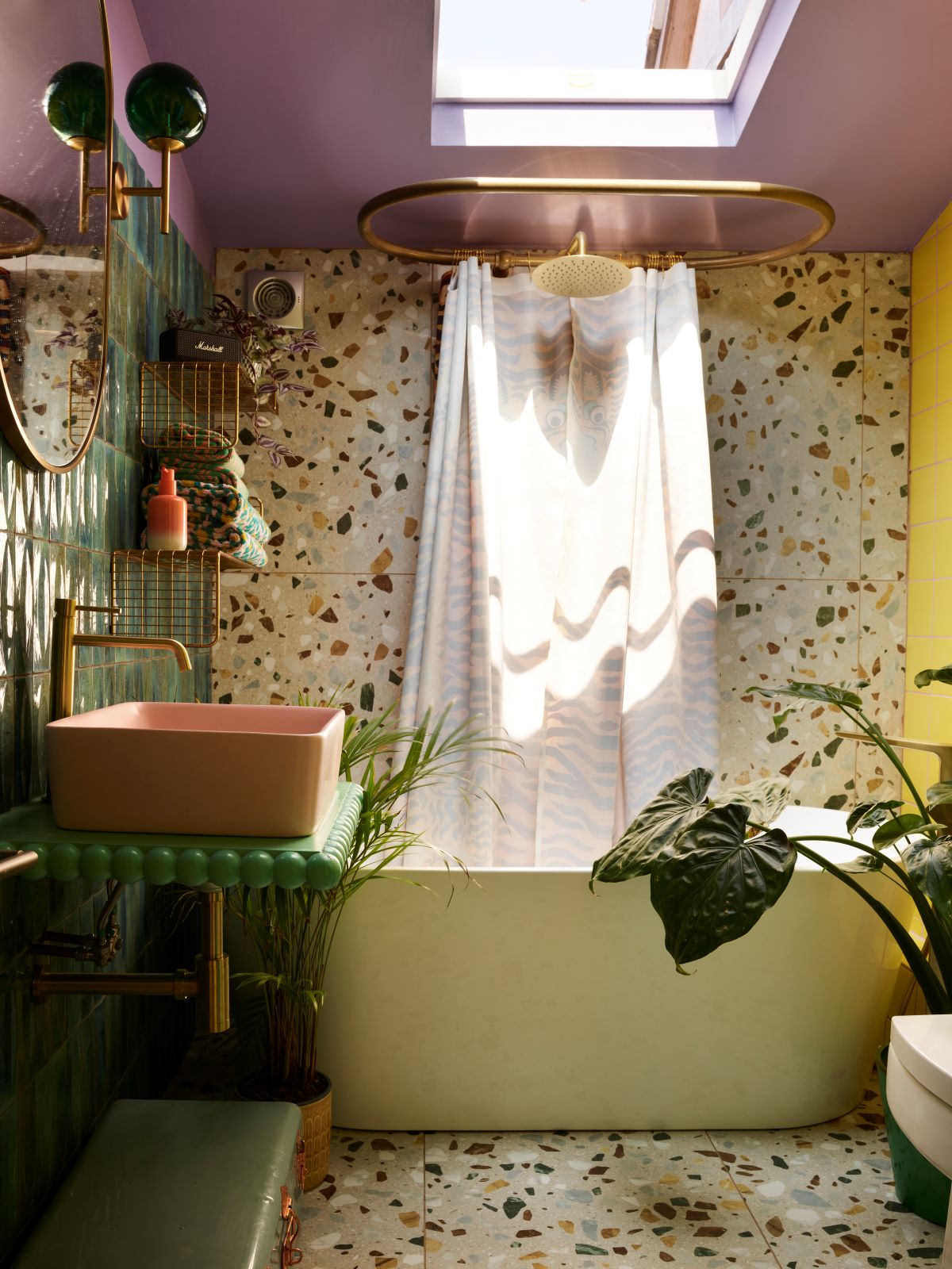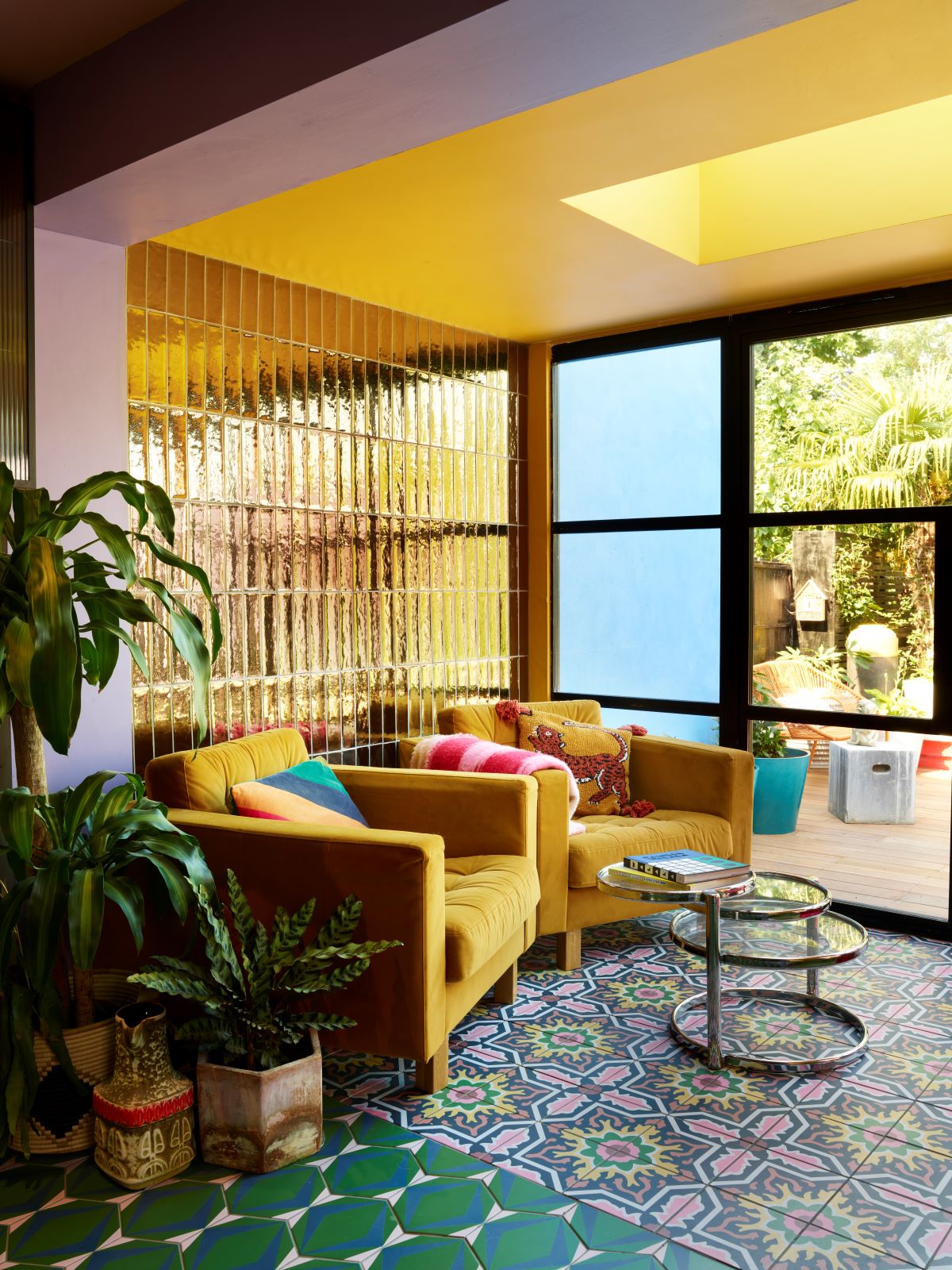 “Eerst was het mijn hobby, maar mensen vragen me steeds vaker. Mijn eigen huis ontwerpen vond ik wel het leukst. Mijn moeder groeide op in Venezuela, en zelf reisde ik als reisjournalist de wereld over. Ik hou van de uitgesproken kleuren die je ziet in India, op Bali en in Mexico. Daar is oranje toch het equivalent van beige. Ik krijg er energie van, het maakt me creatief. Volgens mij vinden veel mensen het eng om felle kleuren in huis te gebruiken, terwijl: je kunt het toch altijd weer overschilderen als het niet bevalt? Gelukkig is mijn man ook flamboyant aangelegd, dus ik hoef me niet in te houden. Soms vraag ik: vind je dit te? Maar dan zegt ie altijd nee. Een koperen aanrecht, gele muren, een knalroze kraan, het mag altijd een onsje meer zijn.”