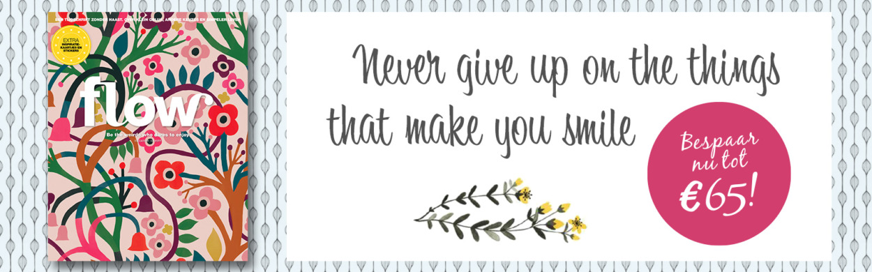 We vinden het jammer dat het laatste nummer van jouw Flow-abonnement al een tijdje geleden bij jou in de brievenbus is gevallen. Jij ook? Fijn, want terugkomen is nu extra voordelig. Geniet 1 jaar of 2 jaar lang van een stukje klein geluk met leuke papieren extra’s. Kies hieronder je korting en bespaar tot 65 euro! Dat zijn 9 magazines uitgespaard (of 24 cappuccino’s voor de koffieliefhebbers) ?